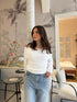 The Cloud Sweater is the perfect addition to your wardrobe. Its soft, fuzzy texture will keep you warm and stylish. The classic white color pairs well with any look, especially when paired with denim jeans. The off shoulder design adds a touch of elegance to this cozy sweater. Experience comfort and chic style with the Cloud Sweater.